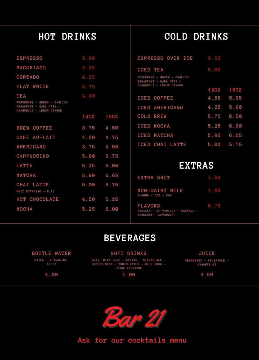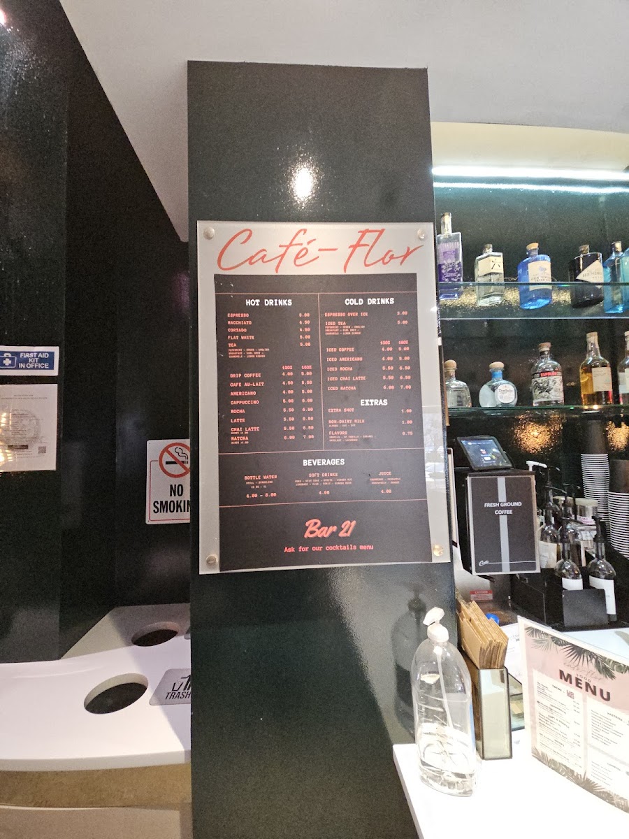Welcome to Café-Flor / Bar 21, a hidden gem nestled in the heart of Chelsea, New York. This charming café is not just a coffee stop; it's an experience. The moment you step inside, you're greeted by a cozy, tropical vibe complemented by abundant greenery. Guests rave about the craftsmanship behind the coffee, with standout options like the creamy latte and invigorating hot cocoa. The drink menu features an array of organic blends, including iced coffee and chai lattes, each customizable with delightful flavors like vanilla or pumpkin spice.
